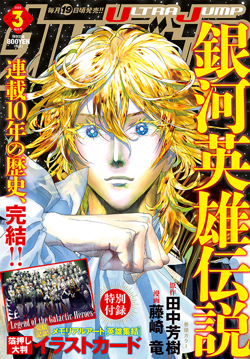 ★ 最 新 号 ★ ウルトラジャンプ2026年3月特大号発売!堂々連載完結! 表紙&巻頭カラー3P!『銀河英雄伝説』原作:田中芳樹 漫画:藤崎竜 2026年2月18日(水) シェアする ツイート シェア